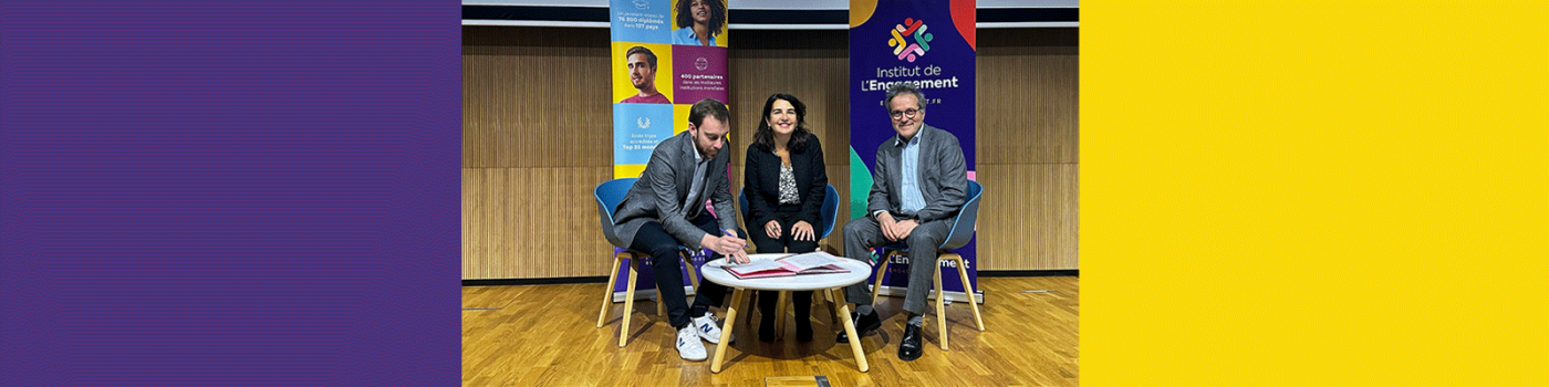 How did it come about? In late February, NEOMA and the Institut de l’Engagement signed a partnership agreement. Delphine Manceau, Dean of NEOMA, Martin Hirsch, President and Quentin Jagorel, CEO of the Institut de l’Engagement were there to mark the occasion.